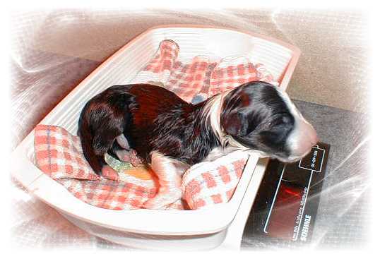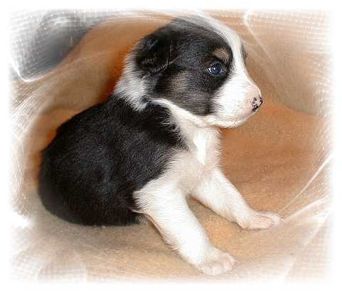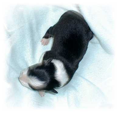 Alec ist der Sechste im Bunde, er erblickte am 02.03.2002 um 3.42 Uhr das Licht der Welt. Ein niedlicher aufgeweckter tricolor Junge, der bei der Geburt 259 Gramm leicht oder schwer war.
