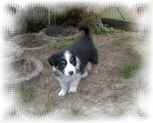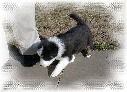 Alec's erster Ausflug ins Freie im Alter von 5 Wochen, da steht er noch und weiß nicht so recht was er davon halten soll.
