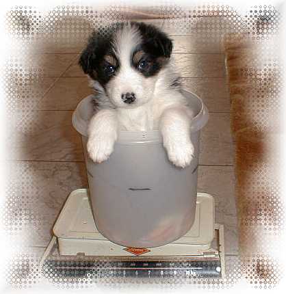 Das ist mein Alec mit 4 Wochen. Da wird der Eimer zum Wiegen doch langsam zu klein für mein Plüschbärchen.