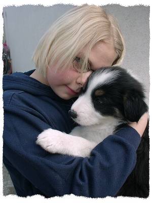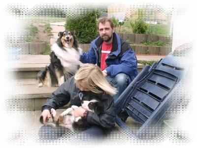 Hier ist Alec's Familie da um ihren kleinen Mann zu besuchen und seine Hausgenossin ist auch mal mitgekommen, denn in seinem neuen Zuhause ist er nicht allein, sondern hat eine nette, schicke Colliedame, die ihm Gesellschaft leistet. Rechts ist er mit seinem neuen "kleinen" Frauchen, die beiden lieben sich heiß und innig, wie man sieht.
