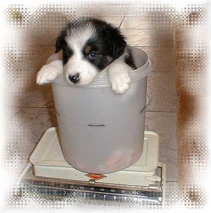 Angelfire beim Wiegen im Alter von 4 Wochen, auch bei ihr paßt der Eimer noch gut.