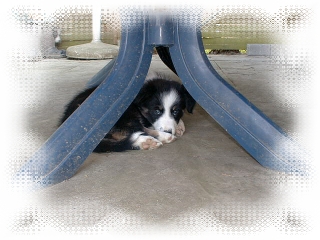 Jaja, die Zeit vergeht hier ist sie schon 8 Wochen alt und kaut an, was sie so findet, obwohl sie auf dem Bild tatsächlich mal einen Kauknochen hat. Aber wenn sie so dasitzt, sieht sie aus, als wenn sie kein Wässerchen trüben könnte, lieb, niedlich und ach, wie anständig.