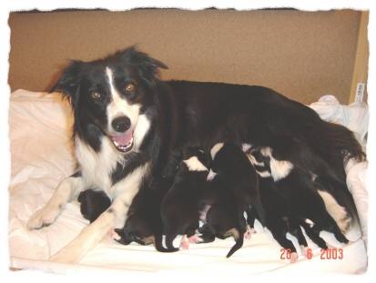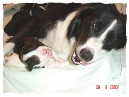Auch Tante Jenny muß immer wieder ihre Neugierde befriedigen. Sie ist dabei allerdings nicht sehr schüchtern und würde sich am liebsten an meiner Stelle zu den Kleinen legen, aber das mag ich nun wirklich nicht. Gucken ist ja erlaubt, aber dann reicht es.............Übrigens ist die Rasselbande hier 10 Tage alt und wird doch so langsam munterer.